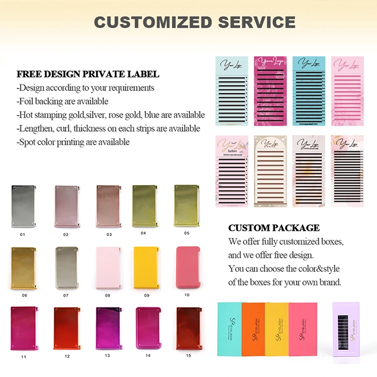 SP Eurnash memastikan kualiti dan keselamatan melalui pensijilan antarabangsa yang ketat, dan memiliki bahan -bahan seperti sijil CE yang disahkan di peringkat antarabangsa. Kami mempunyai kadar penghantaran tepat pada masanya, memberikan sokongan pra-jualan dan selepas jualan, dan mempunyai masa tindak balas yang cepat. Sebagai tambahan kepada pengikat bulu mata berbentuk V, SP Eyelash juga menawarkan pelbagai produk bulu mata yang komprehensif, mencapai perolehan sehenti yang benar.